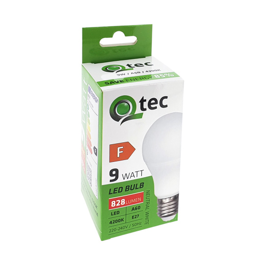 LED ŽÁROVKA Q tec je úsporná LED žárovka s paticí E27, šetrná k životnímu prostředí, neobsahuje totiž žádnou rtuť ani olovo, navíc se dobře osvědčuje i při extrémně nízkých i vysokých teplotách, kdy s vláknovými žárovkami bývají problémy. Její životnost dosahuje až 30 000 hodin. LED žárovka se po zapnutí okamžitě rozsvítí bez jakékoliv prodlevy a vyzařuje příjemné neutrální bílé světlo 4200K.