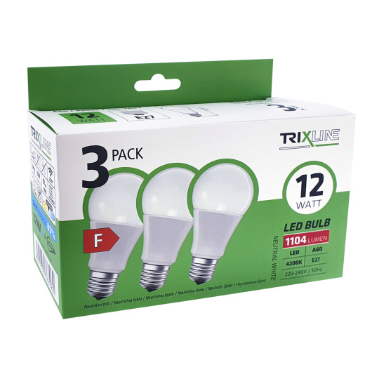 LED žárovka Trixline 12W A60 E27 neutrální bílá 3 PACK
