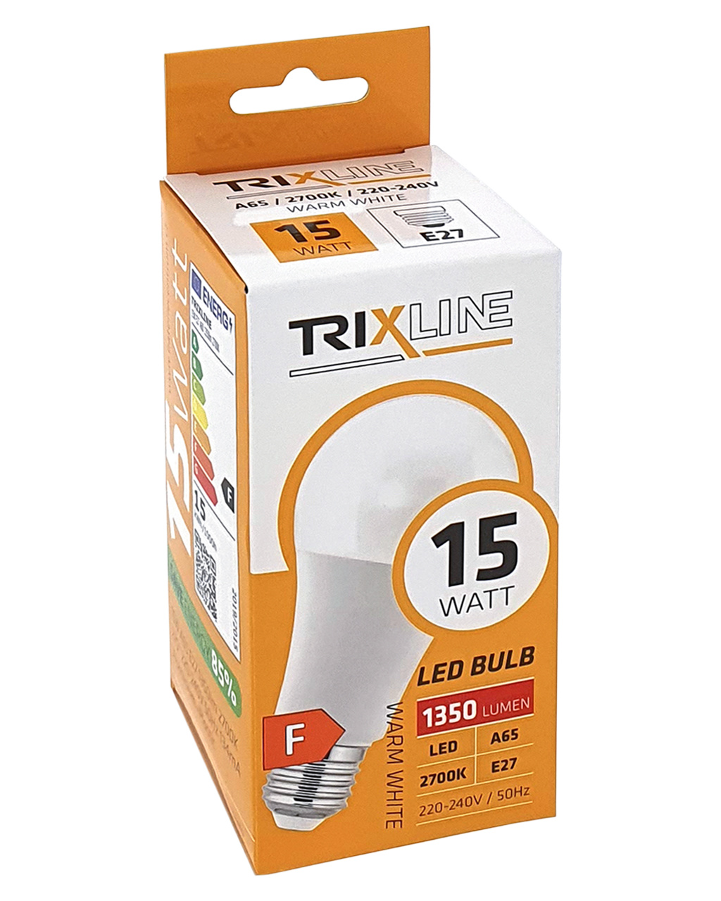 LED ŽÁROVKA TRIXLINE je úsporná LED žárovka s paticí E27, šetrná k životnému prostředí, neobsahuje totiž žádnou rtuť ani olovo, navíc se dobře osvědčuje i při extrémně nízkých i vysokých teplotách, kdy s vláknovými žárovkami bývají problémy. Její životnost dosahuje až 30 000 hodin. Díky svému výkonu 15W výborně poslouží jako náhrada za klasickou 98W žárovku. LED žárovka se po zapnutí okamžitě rozsvítí bez jakékoliv prodlevy a vyzařuje příjemné teplé bílé světlo 2700K.