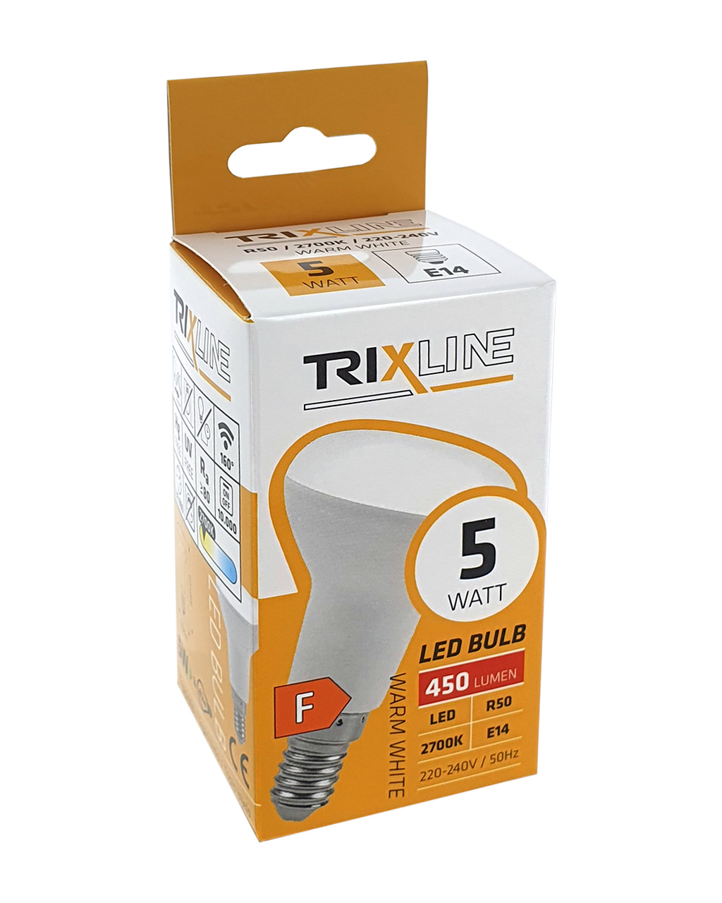 LED ŽÁROVKA TRIXLINE je úsporná LED žárovka s paticí E14, šetrná k životnímu prostředí, neobsahuje totiž žádnou rtuť ani olovo, navíc se dobře osvědčuje i při extrémně nízkých i vysokých teplotách, kdy s vláknovými žárovkami bývají problémy. Její životnost dosahuje až 30 000 hodin. LED žárovka se po zapnutí okamžitě rozsvítí bez jakékoliv prodlevy a vyzařuje příjemné teplé bílé světlo 2700K.
