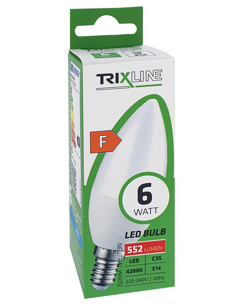 LED úsporná žárovka TRIXLINE s paticí E14, šetrná k životnému prostředí, neobsahuje žádnou rtuť ani olovo, navíc se dobře osvědčuje i při extrémně nízkých i vysokých teplotách, kdy s vláknovými žárovkami bývají problémy. Její životnost dosahuje až 30 000 hodin. Díky svému výkonu 6W výborně poslouží jako náhrada za klasickou 52W žárovku. LED žárovka se po zapnutí okamžitě rozsvítí bez jakékoliv prodlevy a vyzařuje příjemné neutrální bílé světlo 4200K.
