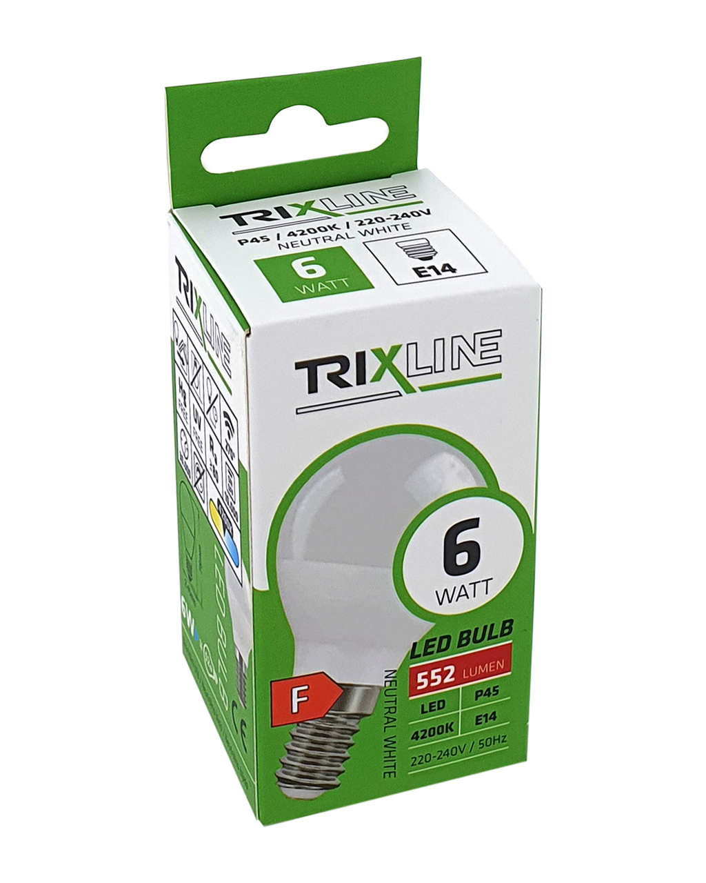 LED ŽÁROVKA TRIXLINE je úsporná LED žárovka s paticí E14, šetrná k životnímu prostředí, neobsahuje totiž žádnou rtuť ani olovo, navíc se dobře osvědčuje i při extrémně nízkých i vysokých teplotách, kdy s vláknovými žárovkami bývají problémy. Její životnost dosahuje až 30 000 hodin. Díky svému výkonu 6W výborně poslouží jako náhrada za klasickou 52W žárovku. LED žárovka se po zapnutí okamžitě rozsvítí bez jakékoliv prodlevy a vyzařuje neutrální bílé světlo 4200K.