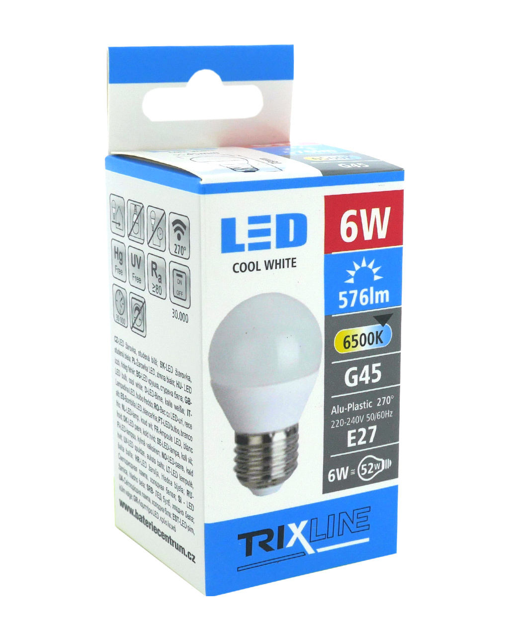 LED ŽÁROVKA TRIXLINE je úsporná LED žárovka s paticí E27, šetrná k životnímu prostředí, neobsahuje totiž žádnou rtuť ani olovo, navíc se dobře osvědčuje i při extrémně nízkých i vysokých teplotách, kdy s vláknovými žárovkami bývají problémy. Její životnost dosahuje až 30 000 hodin. Díky svému výkonu 6W výborně poslouží jako náhrada za klasickou 52W žárovku. LED žárovka se po zapnutí okamžitě rozsvítí bez jakékoliv prodlevy a vyzařuje studené bílé světlo 6500K.