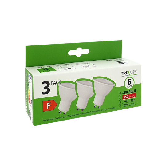 LED žárovka Trixline 6W GU10 neutrální bílá 3 PACK