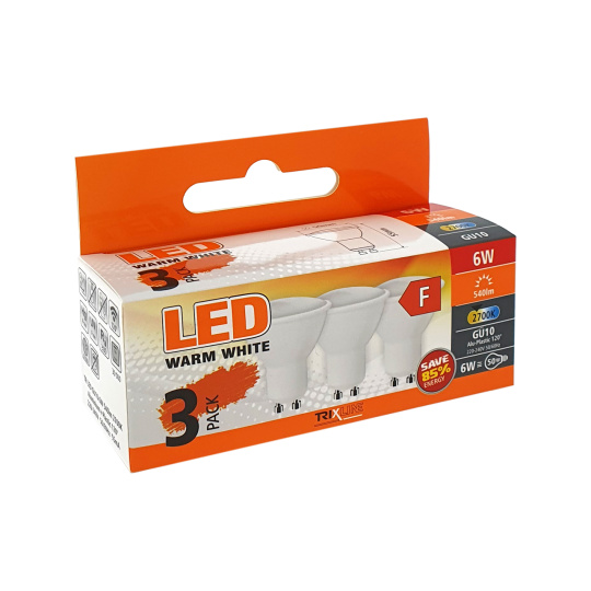 LED žárovka Trixline 6W GU10 teplá bílá 3 PACK