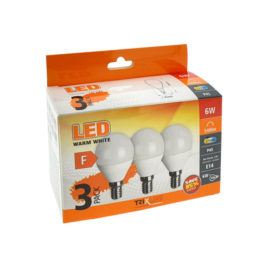 LED žárovka Trixline 6W P45 E14 teplá bílá 3 PACK