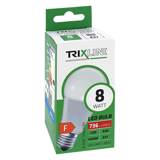 LED žárovka Trixline 8W 736lm E27 A50 neutrální bílá