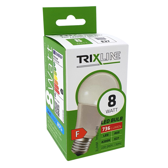 LED žárovka Trixline 8W 736lm E27 A60 neutrální bílá