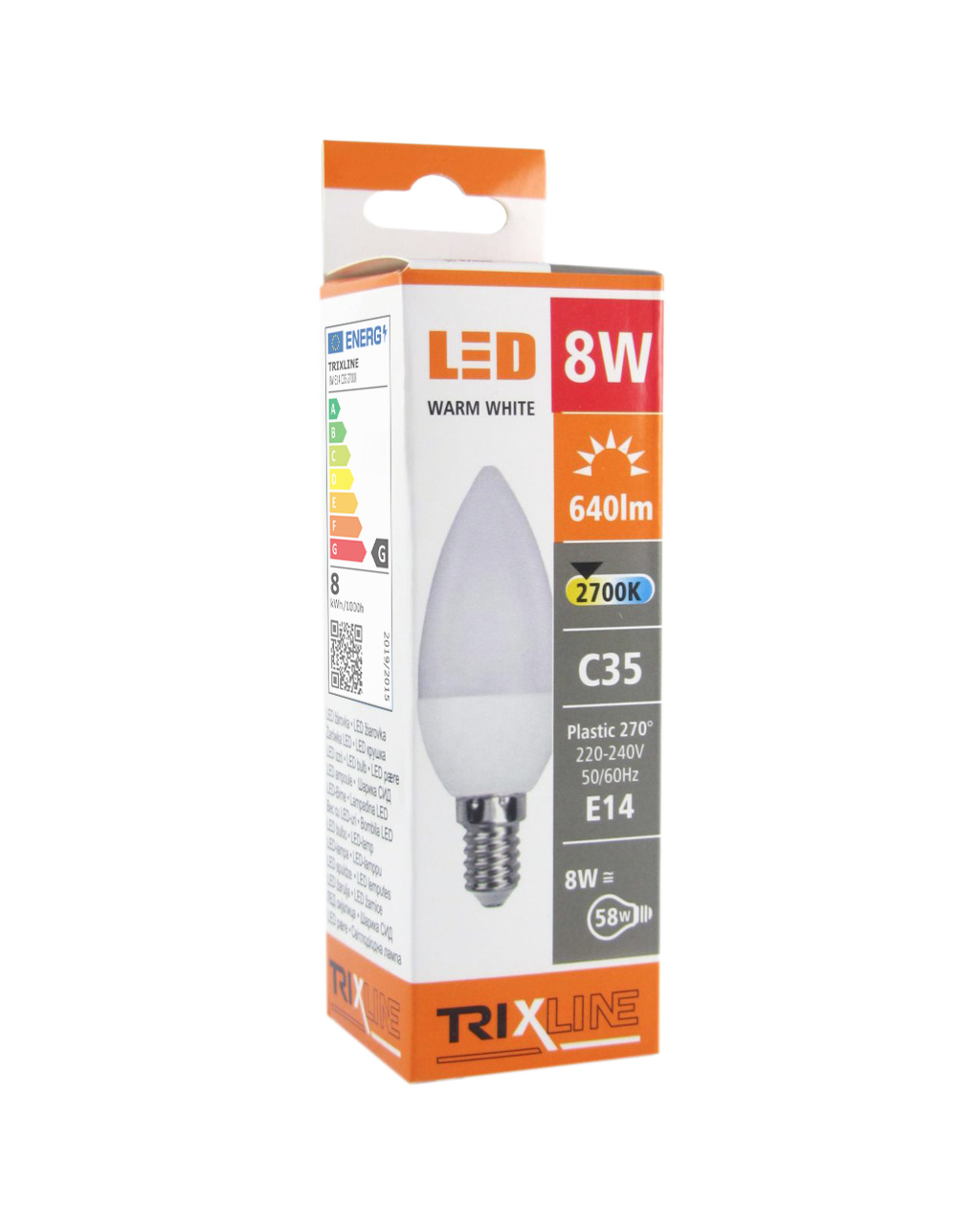 LED žárovka Trixline 8W E14 C35 teplá bílá