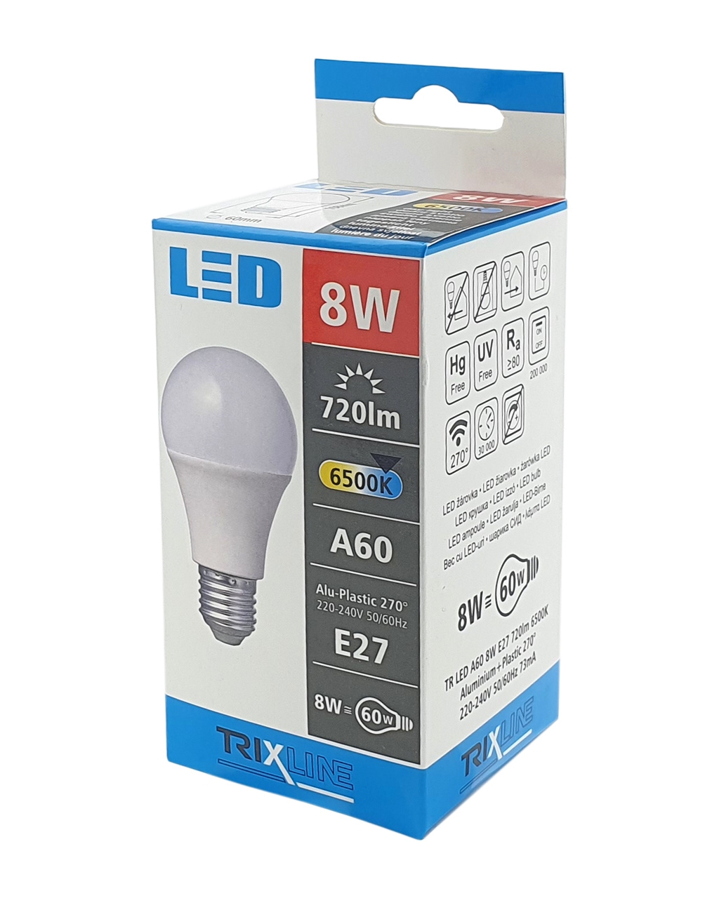 LED žárovka Trixline 8W E27 A60 studená bílá
