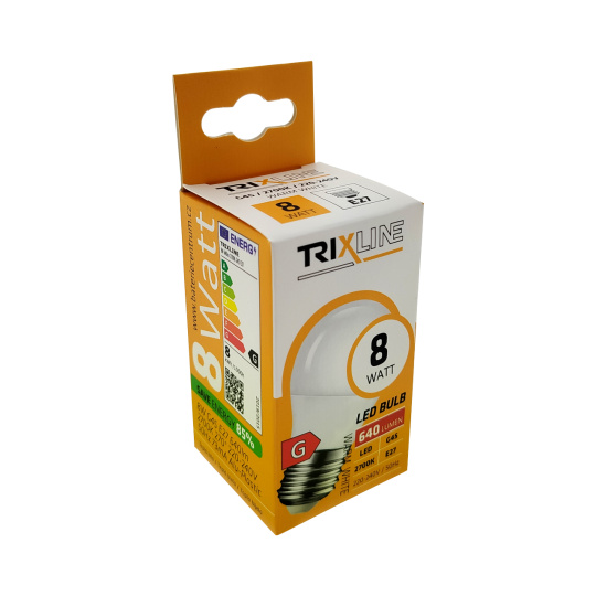 Bezpečnostní informace (PDF)LED žárovka 8W 640lm E27 G45 teplá bílá Trixline