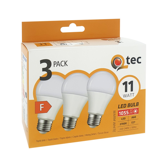 LED žárovky 11W/1055lm/A60/E27 teplá bílá 3 PACK Qtec