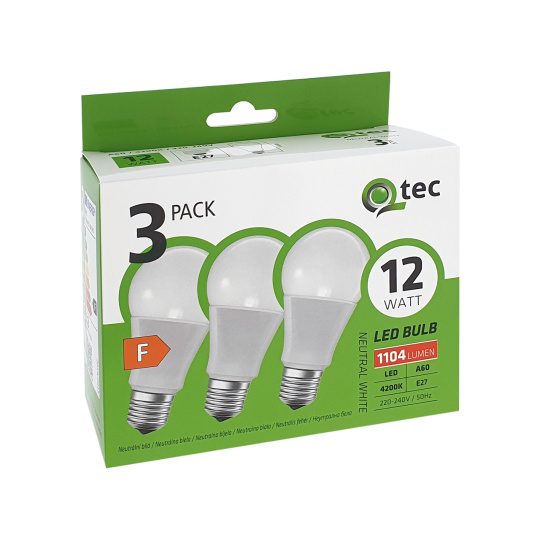 LED žárovky 12W/1104lm/A60/E27 neutrální bílá 3 PACK Qtec