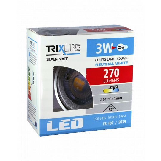 V moderním interiéru se často používají tzv. vestavná světla. Bodové LED světlo TRIXLINE – 3W je ideální volbou. Bodová svítilna s neutrálním bílým světlem příjemným pro oči, můžete volit do všech vnitřních prostorů a naklápět či směrovat podle vlastní volby. LED světlo je určeno k zapuštění do sádrokartónu. Disponuje rychlou a snadnou instalací.