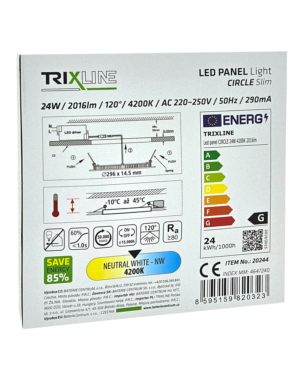 TR-105 LED panel 24W 2016lm 4200K - kruhový vestavný Trixline