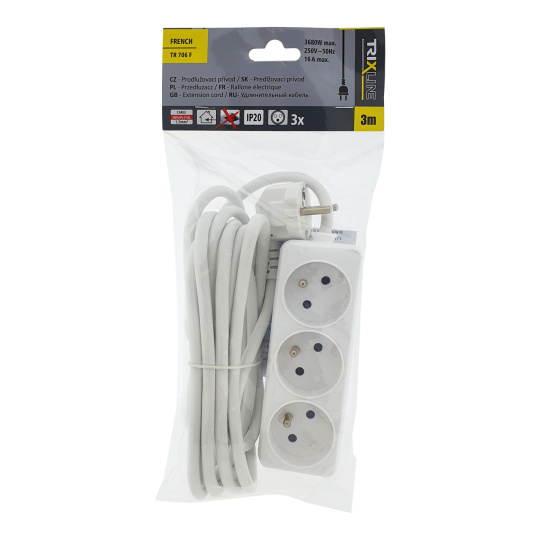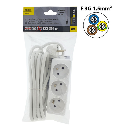 Prodlužovací přívod 3 zásuvky, 3m, TR 706 F