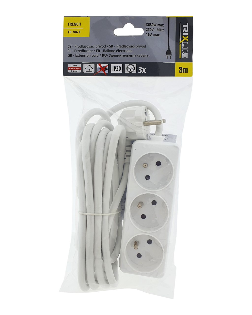 Prodlužovací přívod 3 zásuvky, 3m, TR 706 F