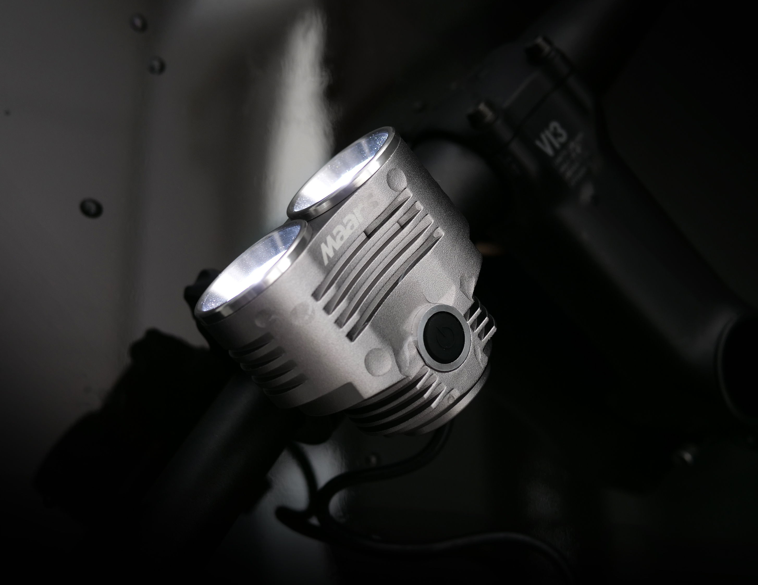 MAARS MR 801 - Profesionální výkonná cyklosvítilna se světelným tokem 1350lm. Kvalitní přední světlo vhodné pro těžké terény a dlouhodobé jízdy.