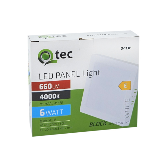 Bezpečnostní informace (PDF)Q-113P LED panel 6W 660lm 4000K bílý - čtvercový přisazený Qtec