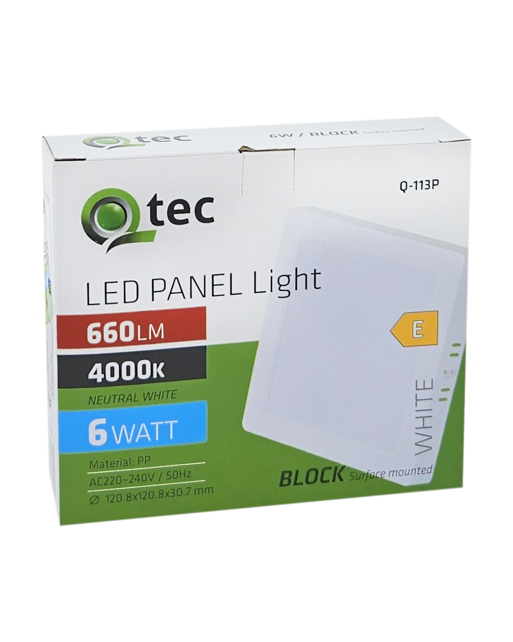 Bezpečnostní informace (PDF)Q-113P LED panel 6W 660lm 4000K bílý - čtvercový přisazený Qtec