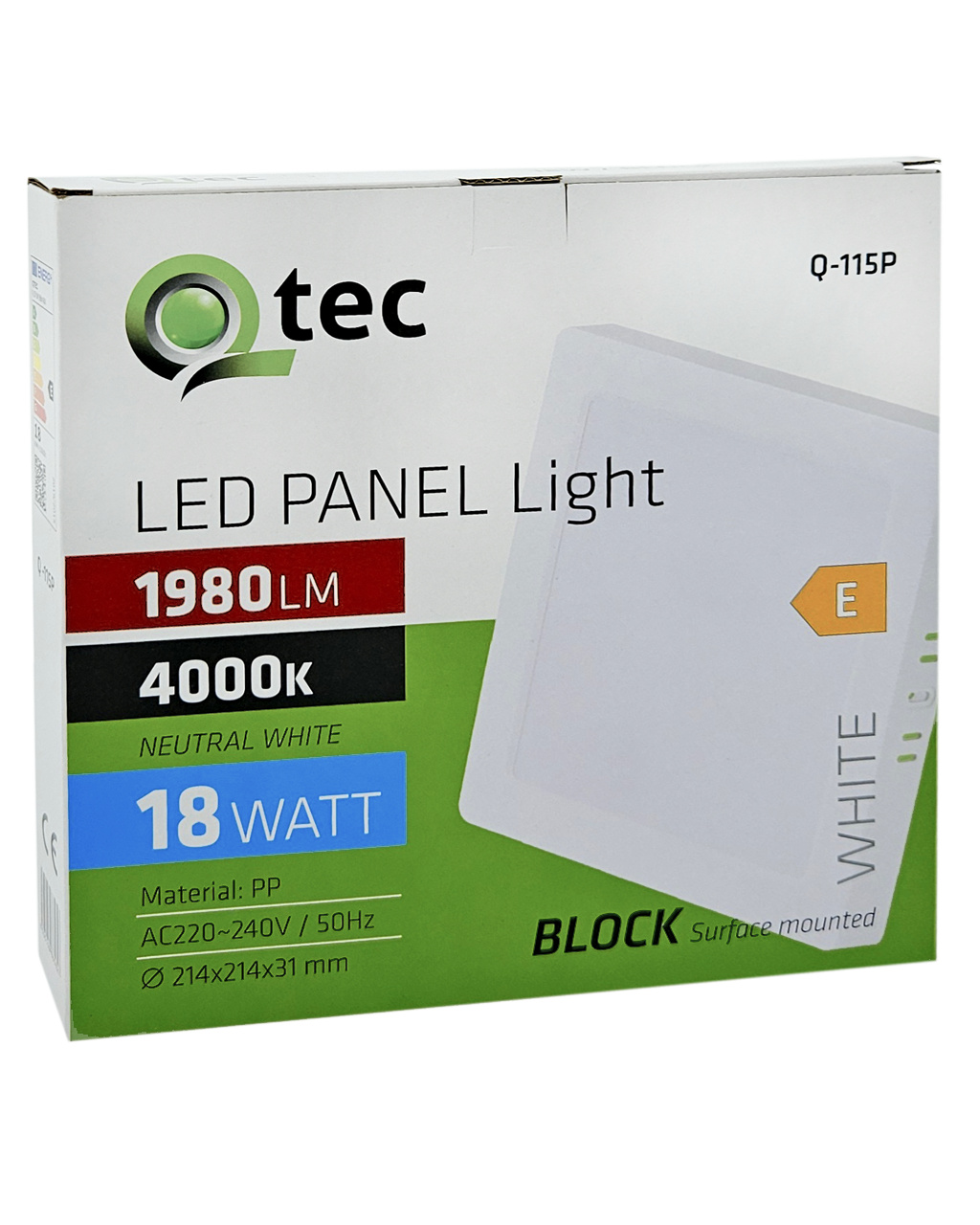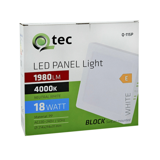 Bezpečnostní informace (PDF)Q-115P LED panel 18W 1980lm 4000K bílý - čtvercový přisazený Qtec