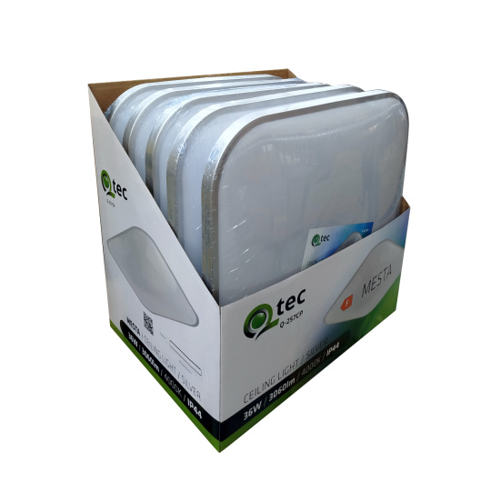 Moderní a výkonné LED stropní svítidlo Q-257CP MESTA značky QTEC je vhodné pro osvětlení interiérů i krytých venkovních prostor. S výkonem 36W a světelným tokem 3060lm poskytuje rovnoměrné a příjemné neutrální bílé světlo (4000K), které je vhodné do obývacích pokojů, kuchyní, chodeb či koupelen. Díky úhlu svícení 120° zajistí široké pokrytí prostoru a krytí IP44 umožňuje instalaci i do vlhkých prostředí. Čtvercový design se stříbrným lemem a rozměry 45×45×5cm dokonale zapadne do moderních i klasických interiérů.