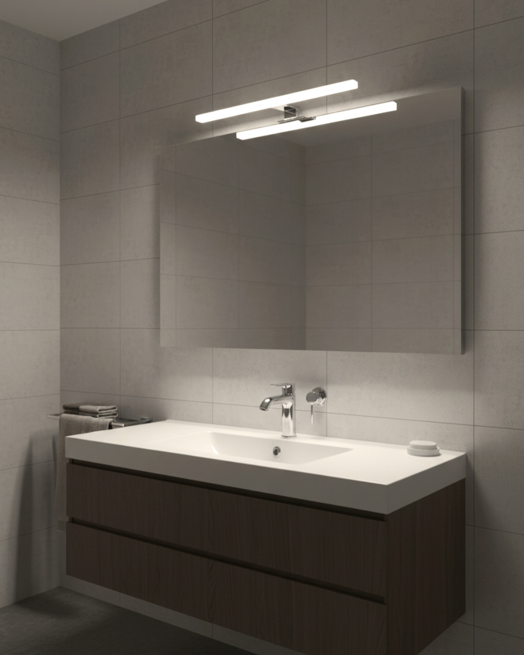Předností koupelnového nástěnného osvětlení Q-309CH Qtec 8W je moderní design, kvalitní zpracování, stupeň krytí IP44 umožňuje instalovat světlo do místnosti se zvýšenou vlhkostí např. koupelny, 3v1 způsoby montáže na zrcadlo, skříňku nebo stěnu. Zdrojem světla jsou energeticky úsporné LED diody, které vyzařují neutrální bílou barvu světla 4000K příjemnou pro oči.