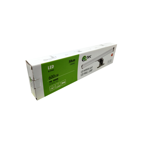 Předností koupelnového nástěnného osvětlení Q-315CH Qtec 7W je moderní design, kvalitní zpracování, stupeň krytí IP44 umožňuje instalovat světlo do místnosti se zvýšenou vlhkostí např. koupelny, 3v1 způsoby montáže na zrcadlo, skříňku nebo stěnu. Zdrojem světla jsou energeticky úsporné LED diody, které vyzařují neutrální bílou barvu světla 4000K příjemnou pro oči.