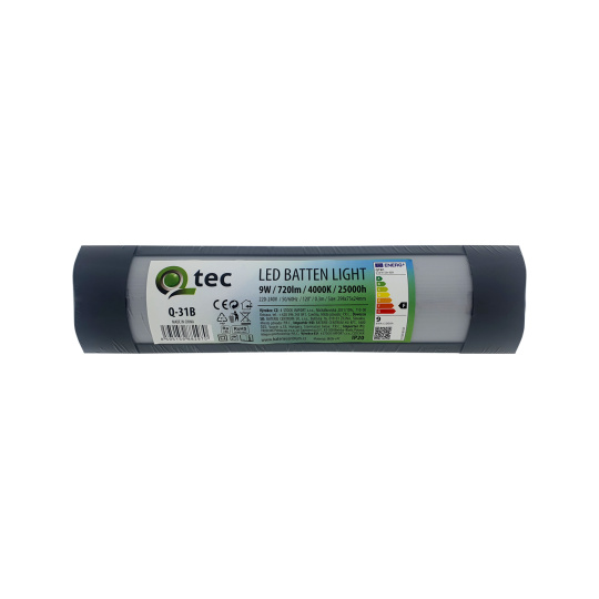 LED podlinkové energeticky úsporné svítidlo 9W 720lm Batten Light Q-31B Qtec. Vyzařuje příjemnou neutrální bílou barvu světla 4000K. Svítidlo má široké, praktické využití lze namontovat do interiéru např. nad kuchyňskou linku, do chodeb, hal, kanceláří, do jídelny, kavárny, obchodu, dílny, garáže apod. V nabídce máme světla ve 2 barevných variantách v černé a v bílé.