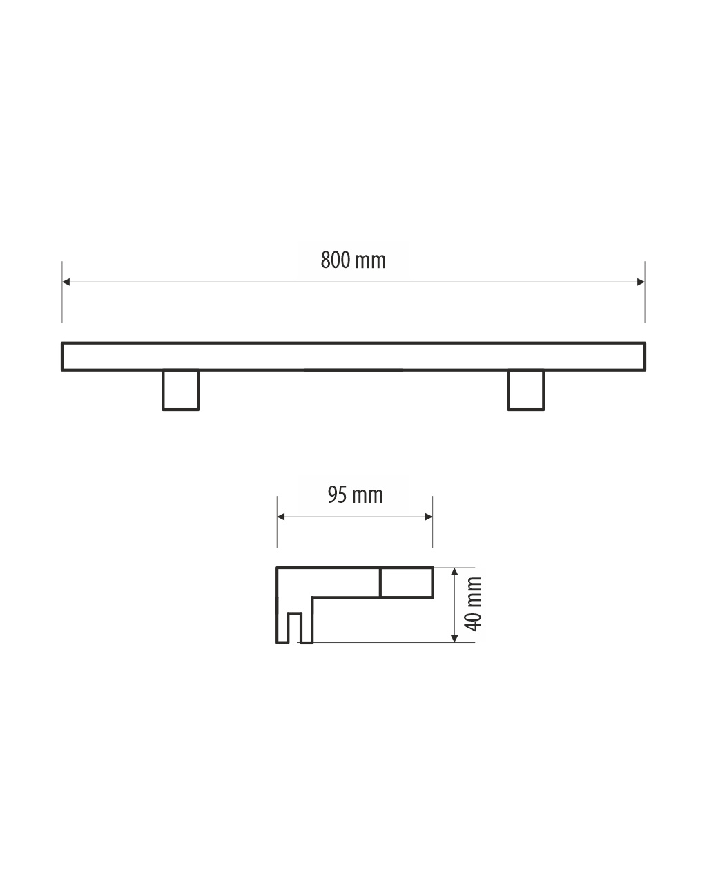 Rozměr světla (ŠxVxH): 800x95x40mm