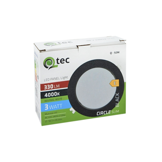 Q-50M LED panel 3W 330lm 4000K černý - kruhový vestavný Qtec
