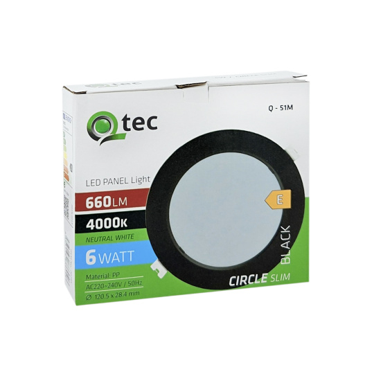 Bezpečnostní informace (PDF)Q-51M LED panel 6W 660lm 4000K černý - kruhový vestavný Qtec