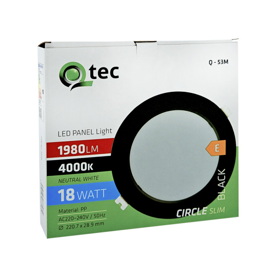 Bezpečnostní informace (PDF)Q-53M LED panel 18W 1980lm 4000K černý - kruhový vestavný Qtec
