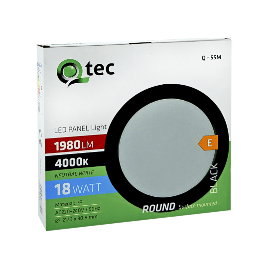 Q-55M LED panel 18W 1980lm 4000K černý - kruhový přisazený Qtec