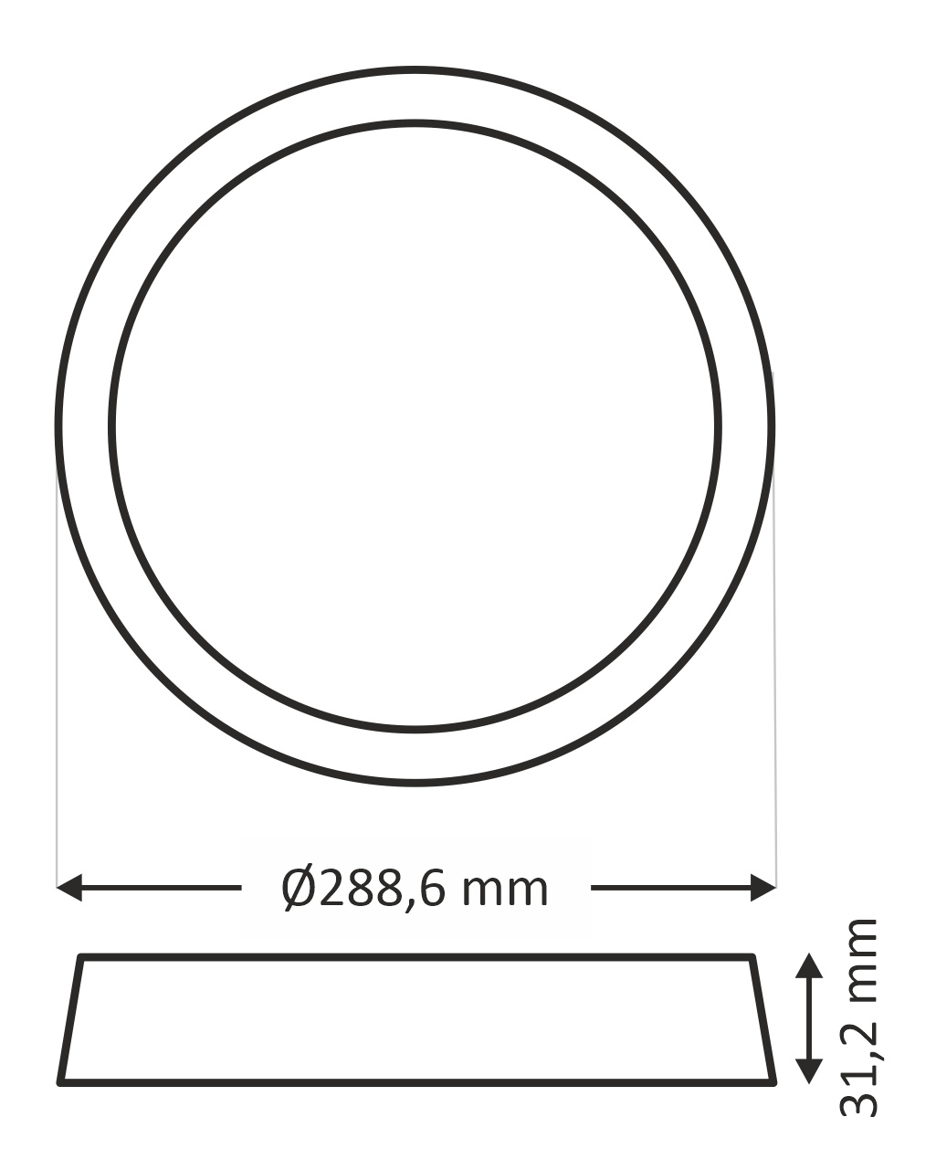 - Vnější rozměr světla: ø288,6x31,2mm