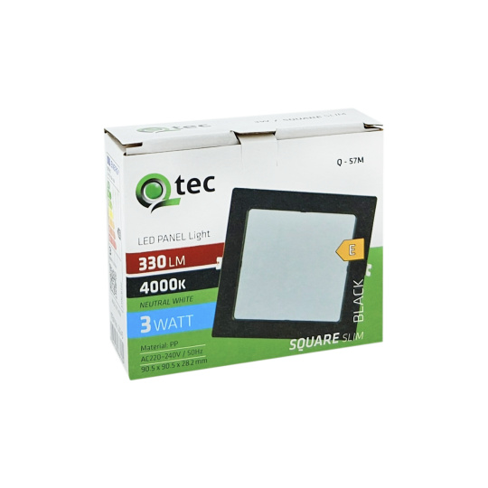 Bezpečnostní informace (PDF)Q-57M LED panel 3W 330lm 4000K černý - čtvercový přisazený Qtec