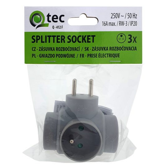 QTEC Q-412F šedá rozbočovací zásuvka RW-3