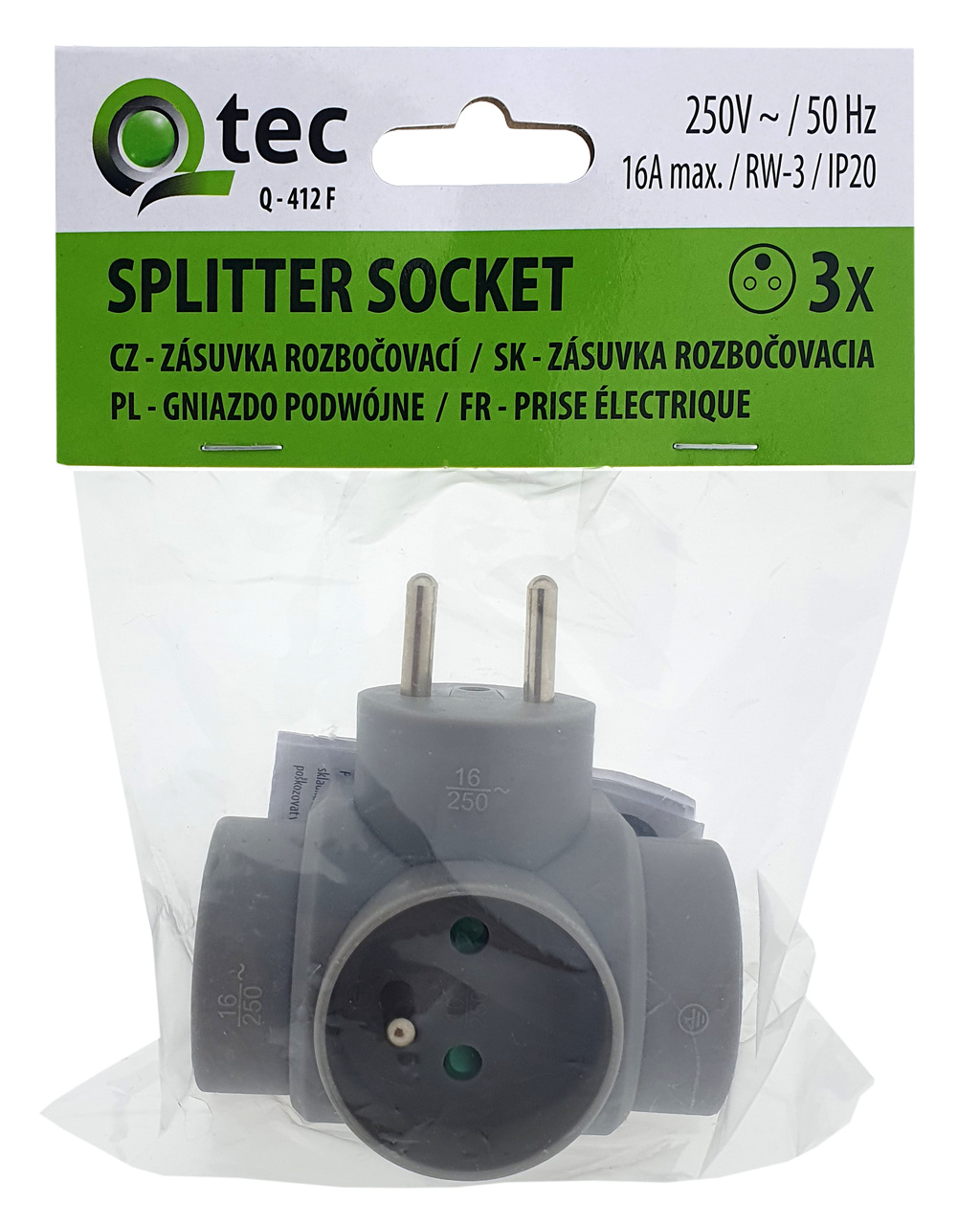 QTEC Q-412F šedá rozbočovací zásuvka RW-3
