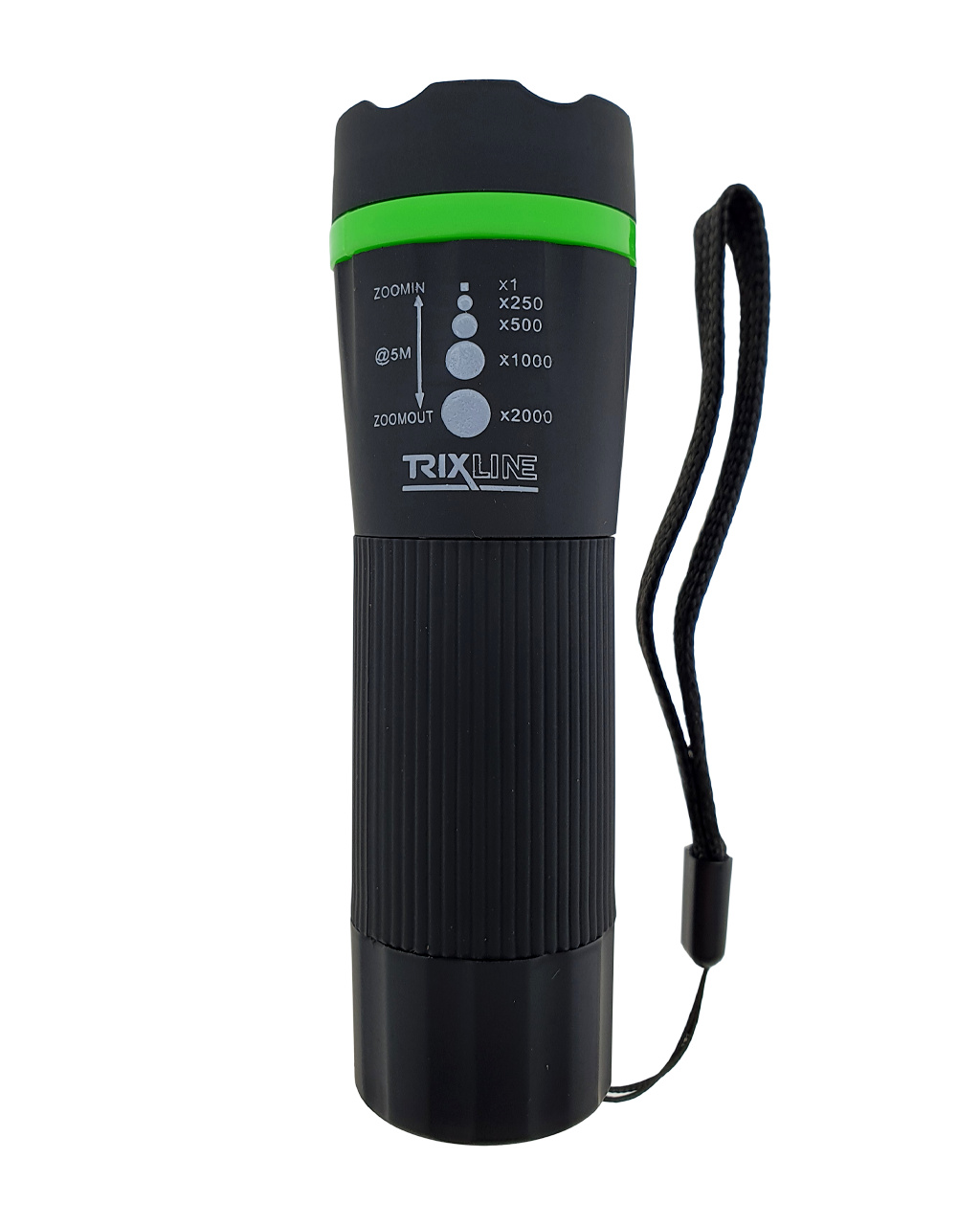 Ruční LED svítilna se zoomem. Vyniká především svou vysokou svítivostí, nastavitelnou šířkou světelného kuželu a dosvitem až 5m. Režim svícení ON/OFF, zoom x1/x250/x500/x1000/x2000.