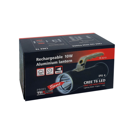 Ruční nabíjecí svítilna Trixline A213 LED je příruční světlo vysokého výkonu. Tělo svítilny je z hliníku, čímž zajišťuje nízkou hmotnost a vysokou odolnost. Po vybití stačí nabít přiloženou nabíječkou. Svítilna je opatřena pevnou rukojetí.