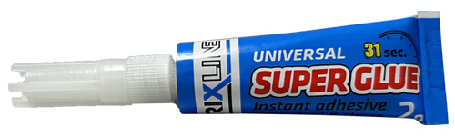 Univerzální sekundové lepidlo na plast, porcelán, kov, kůži, gumu, karton a sklo.