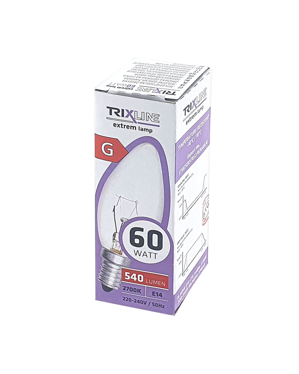 Speciální žárovka Trixline C35, 60W E14 540lm teplá bílá