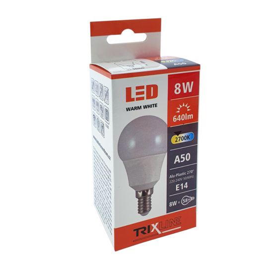 LED žárovka Trixline 8W E14 A50 teplá bílá