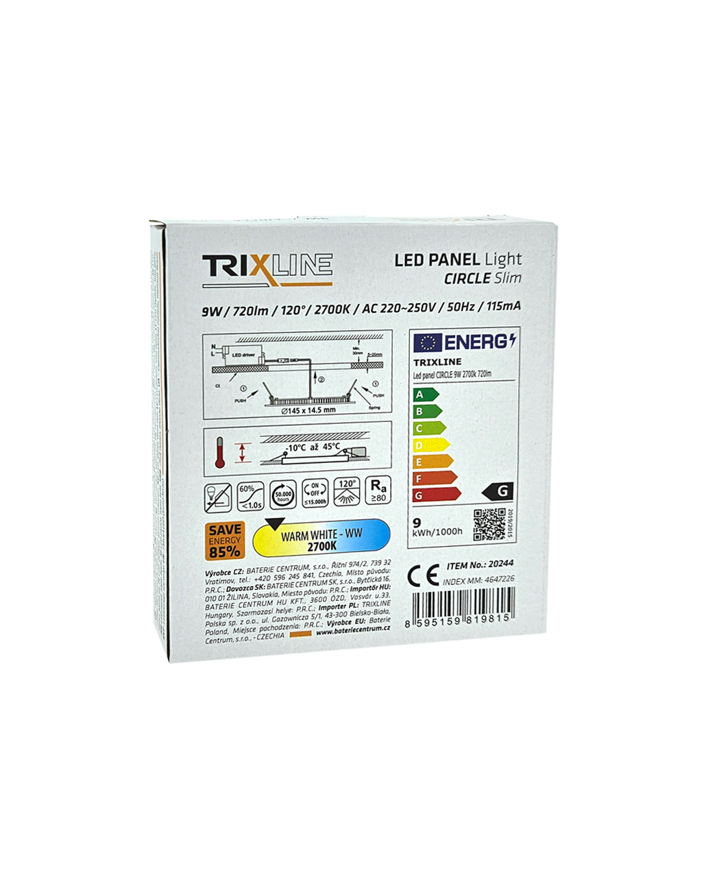 TR-127 LED panel 9W 720lm 2700K - kruhový vestavný Trixline