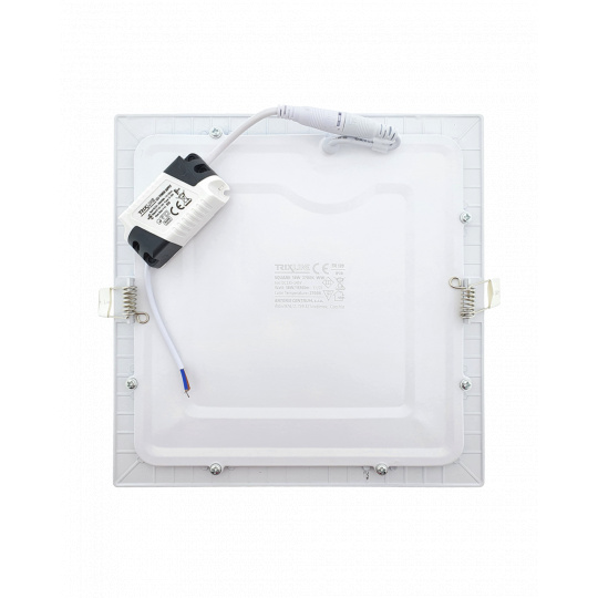 Čtvercový vestavný LED panel Trixline TR-139 o výkonu 18W se světelným tokem 1590lm a teplou bílou barvou světla 2700K. Panel je vyroben z kvalitního hliníku. Díky použité LED technologii ušetříte až 85% energie. Je určen do interiéru k zapuštění do sádrokartónu s montážním otvorem 20,5x20,5cm. Vnější rozměr světla je 22x22x1,45cm. Rychlá a snadná instalace.
