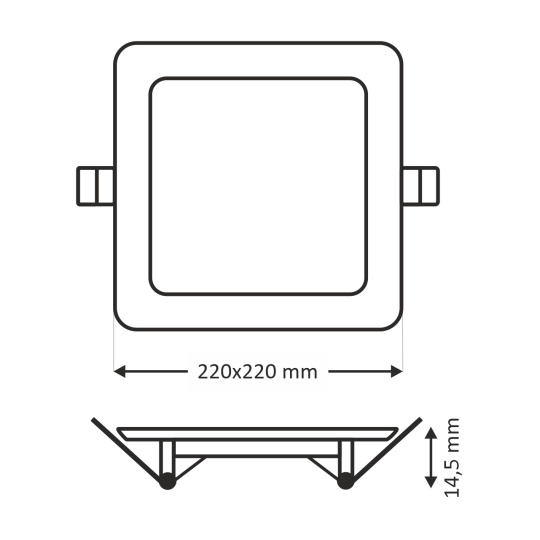 Vnější rozměr světla: 220x220x14,5mm / Montážní otvor: 205x205mm