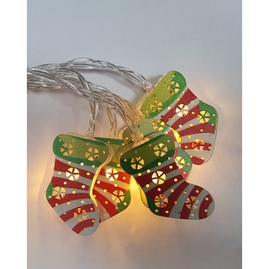 Ozdobte svůj domov nebo zahradu stylovou girlandou s 10 kovovými světýlky ve tvaru punčochy. Teplé bílé LED osvětlení navodí příjemnou sváteční náladu a díky napájení na baterie ji snadno umístíte kamkoli – i bez zásuvky.