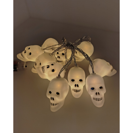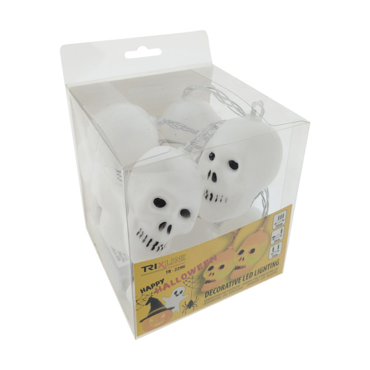 Vytvořte tajemnou atmosféru s originálním halloweenským osvětlením ve tvaru lebek! Světelný řetěz TR-229H je ideální dekorací pro strašidelnou výzdobu domu nebo bytu.