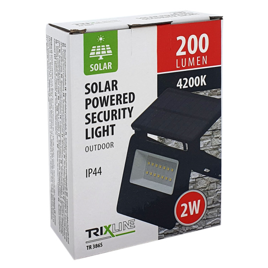 Bezpečnostní informace (PDF)TR 386S LED Solární reflektor 2W 4200K s pohybovým senzorem Trixline