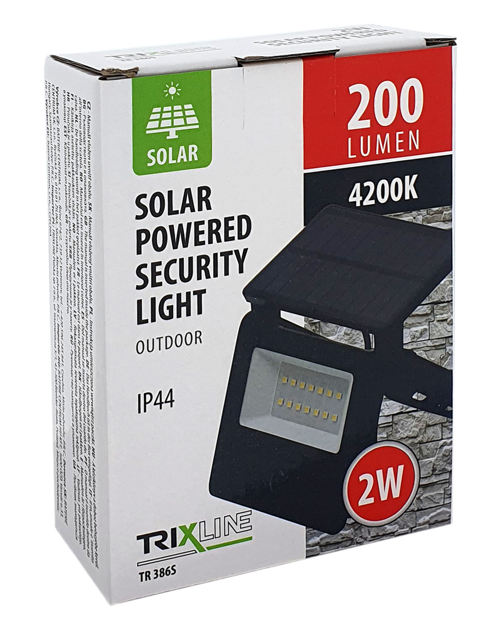 Bezpečnostní informace (PDF)TR 386S LED Solární reflektor 2W 4200K s pohybovým senzorem Trixline